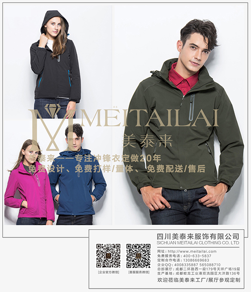 德阳羽绒服定制,冲锋衣,防寒服的频率会越来越高,统一企业形象必然要统一服装并希望将企业团体logo等绣在衣服上,美泰来针对团体客户提供德阳冲锋衣定做,给您个性定制大批量冲锋衣,只要您想要的款式,美泰来都能给您设计打样,还可以提供哥伦比亚、北面、始祖鸟、狼爪品牌冲锋衣批发团购,全面满足您的需求。